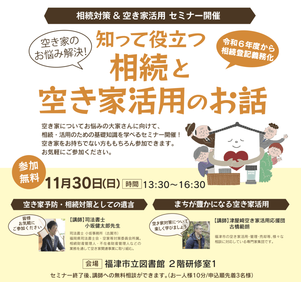 空き家対策&空き家活用セミナー開催 【11月30日(日)13:30〜16:30】